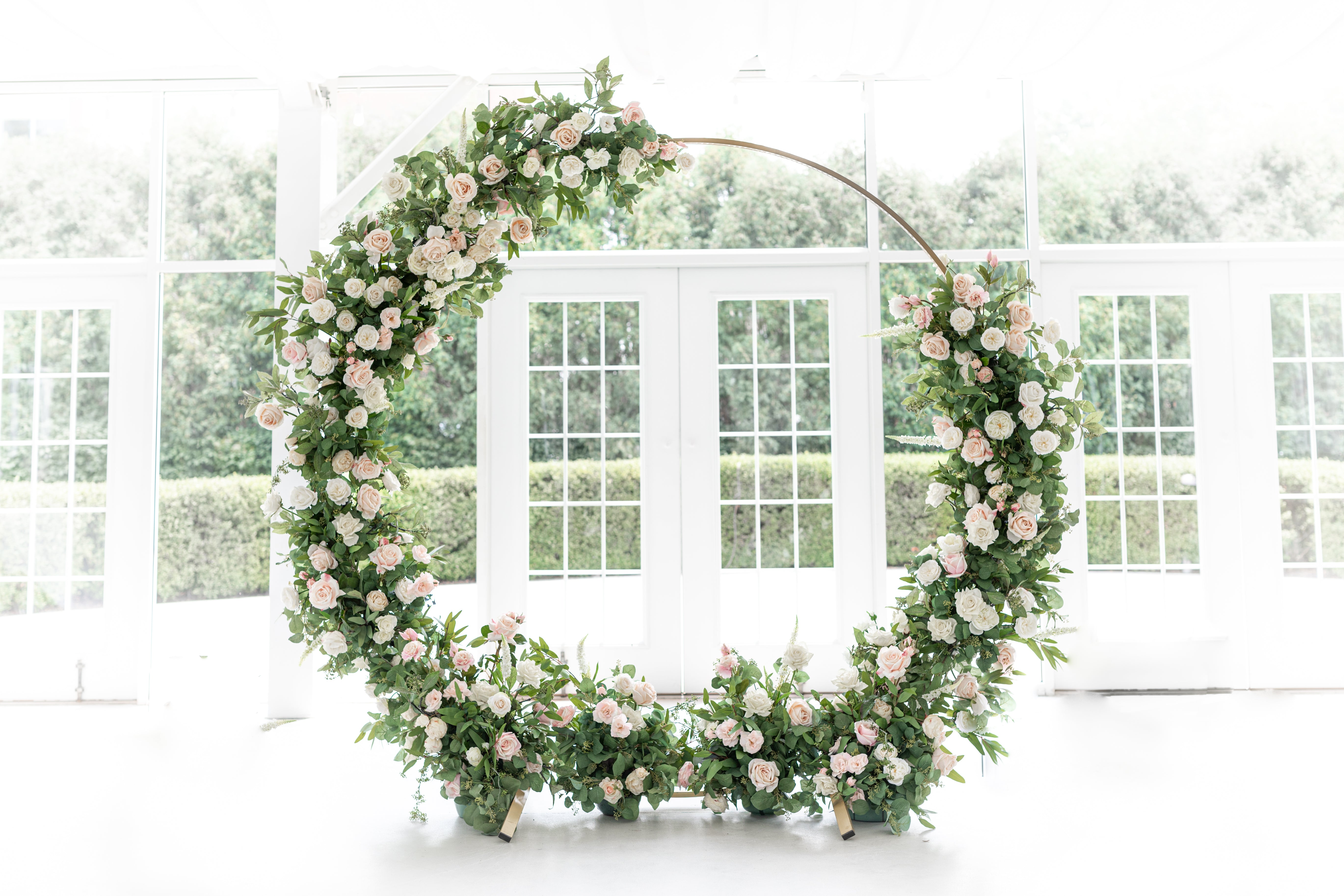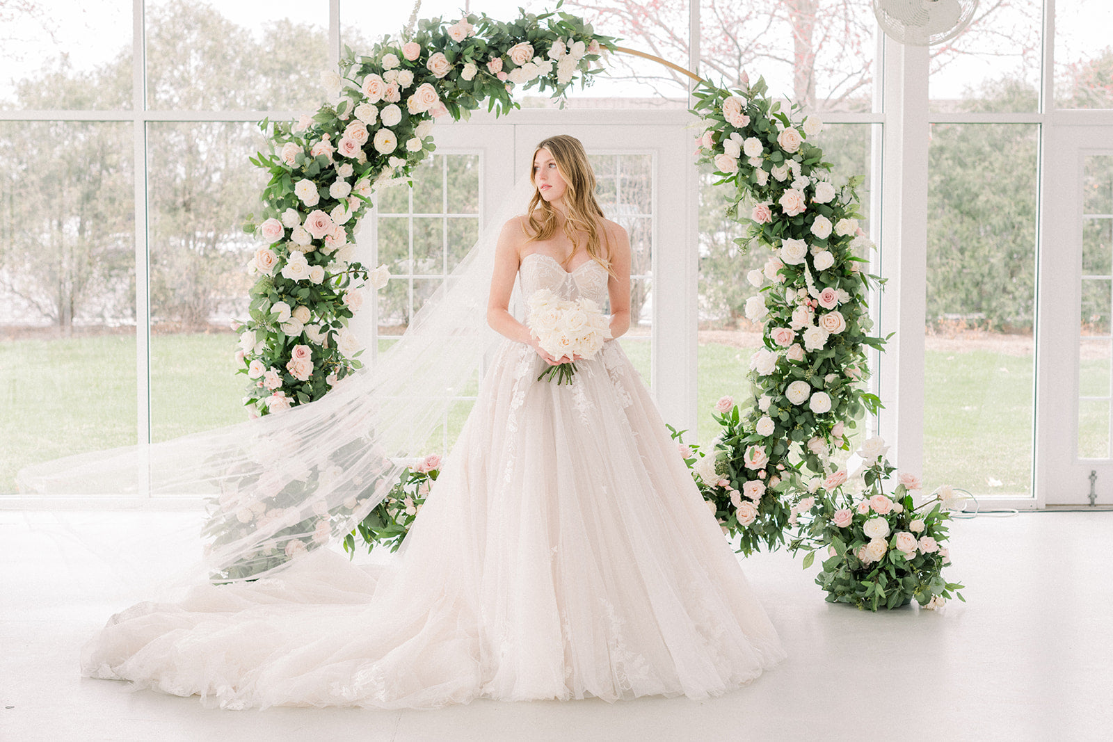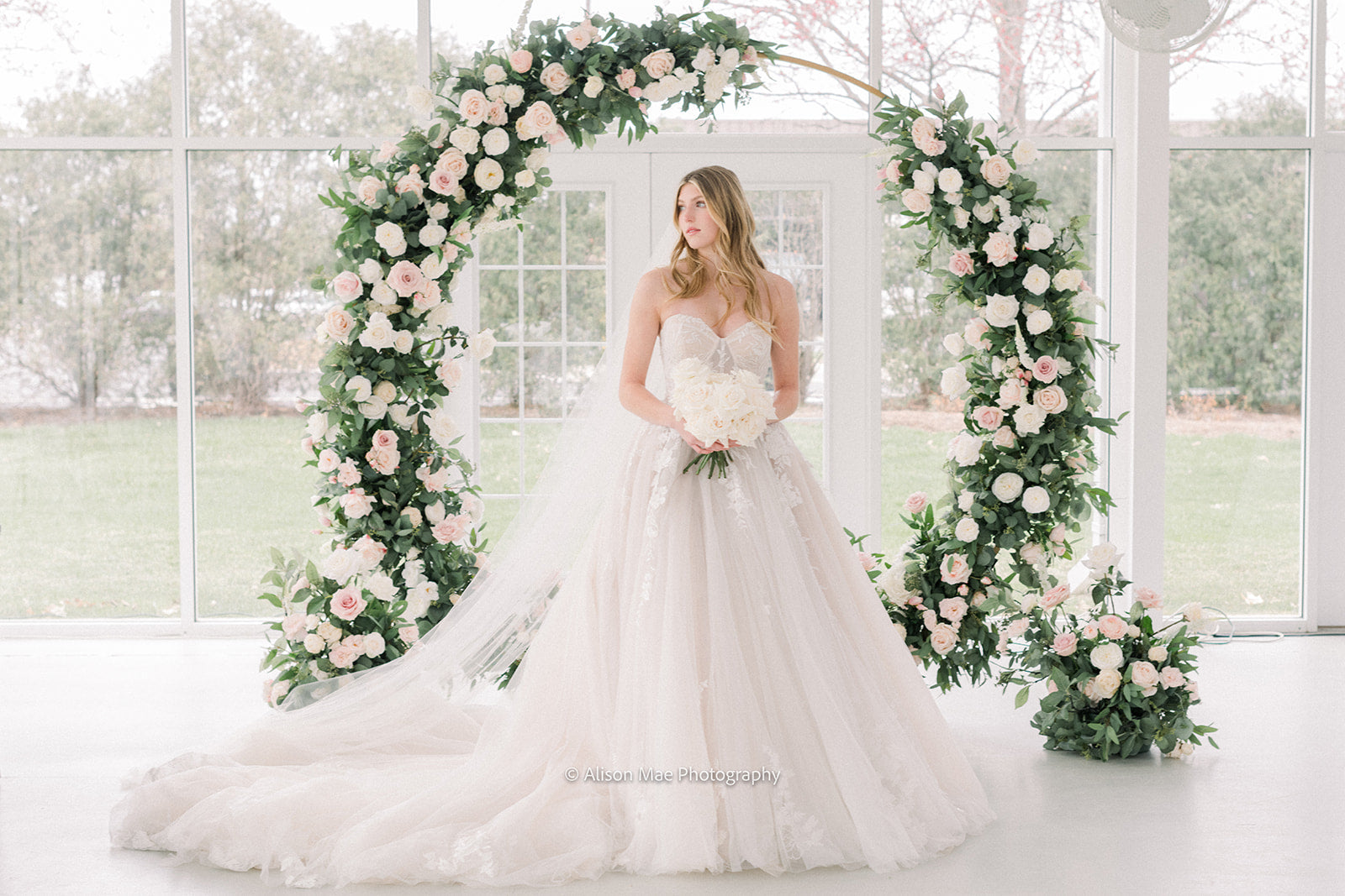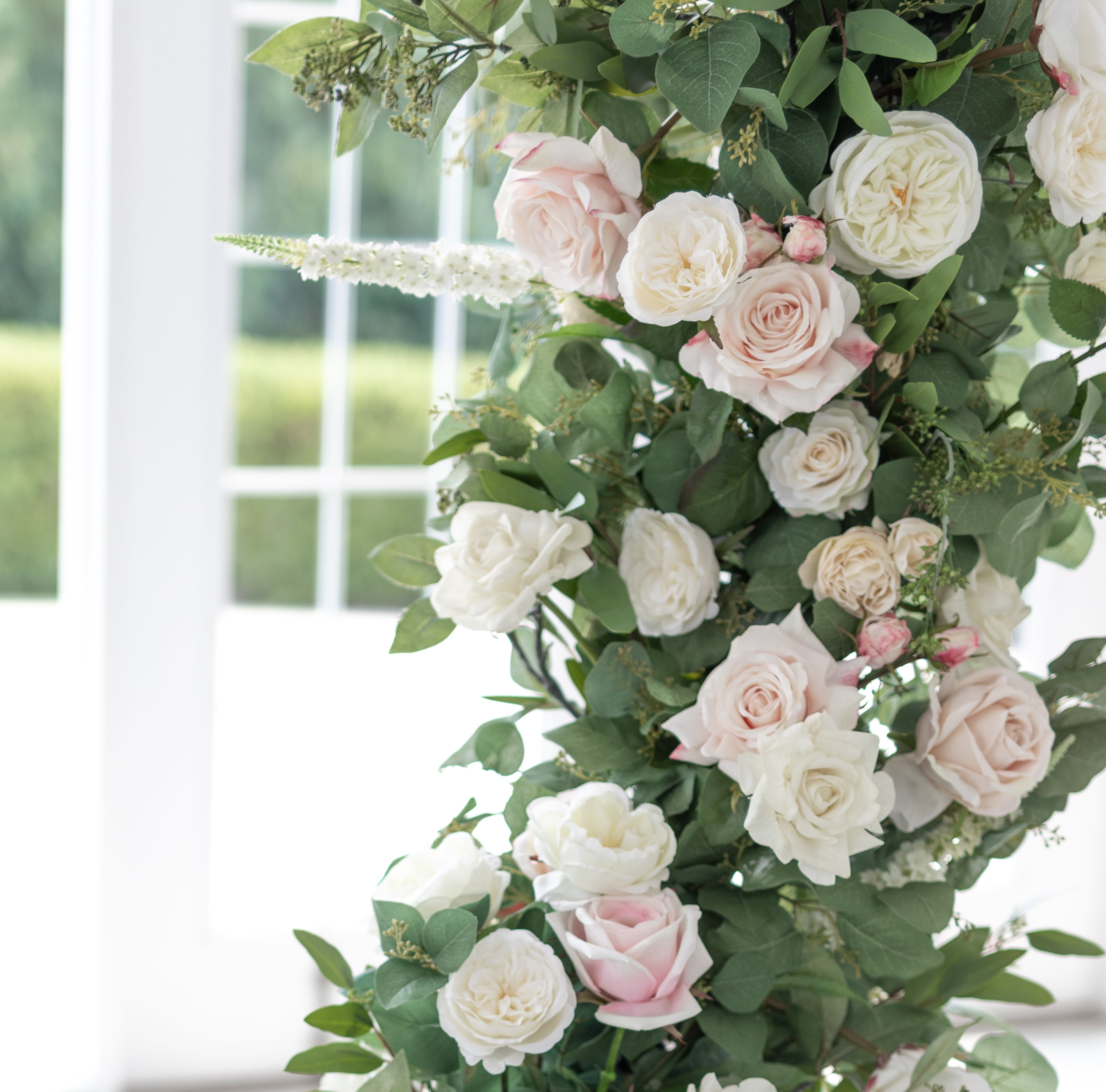 Our new Laurel arch is simply breathtaking. It feels romantic, whimsical, & airy, adorned in hundreds of the most beautiful ivory, blush, white flowers, and greenery.