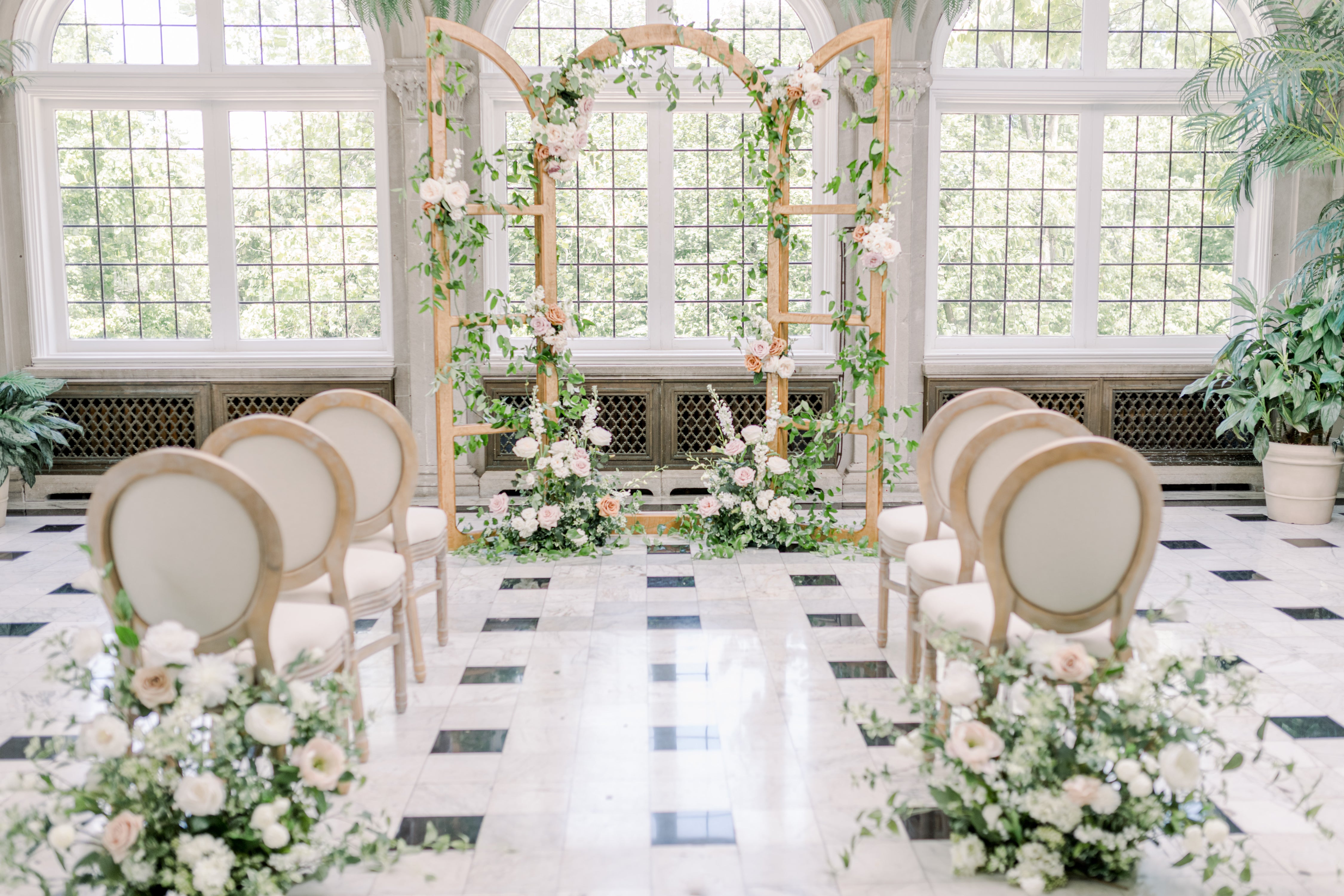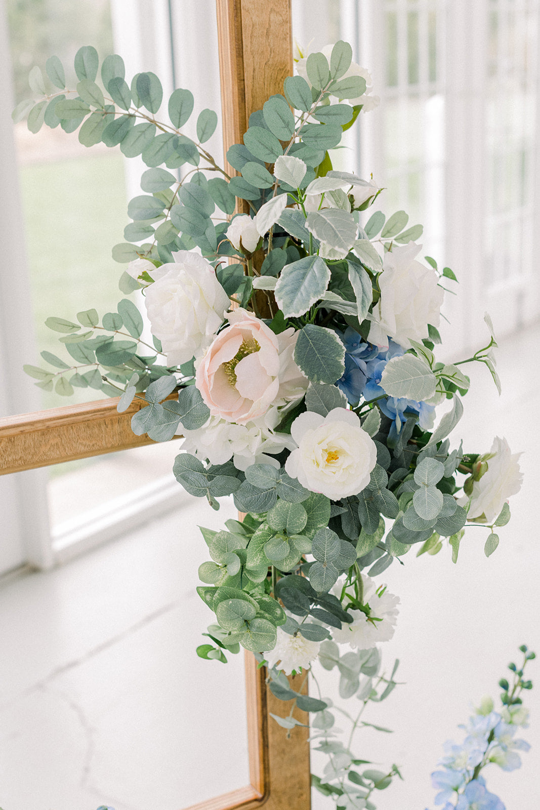 This arch can be paired with any of our floral collections! We have shown photos of it customized with blue and blush, but it comes standard in neutral colors unless requested.