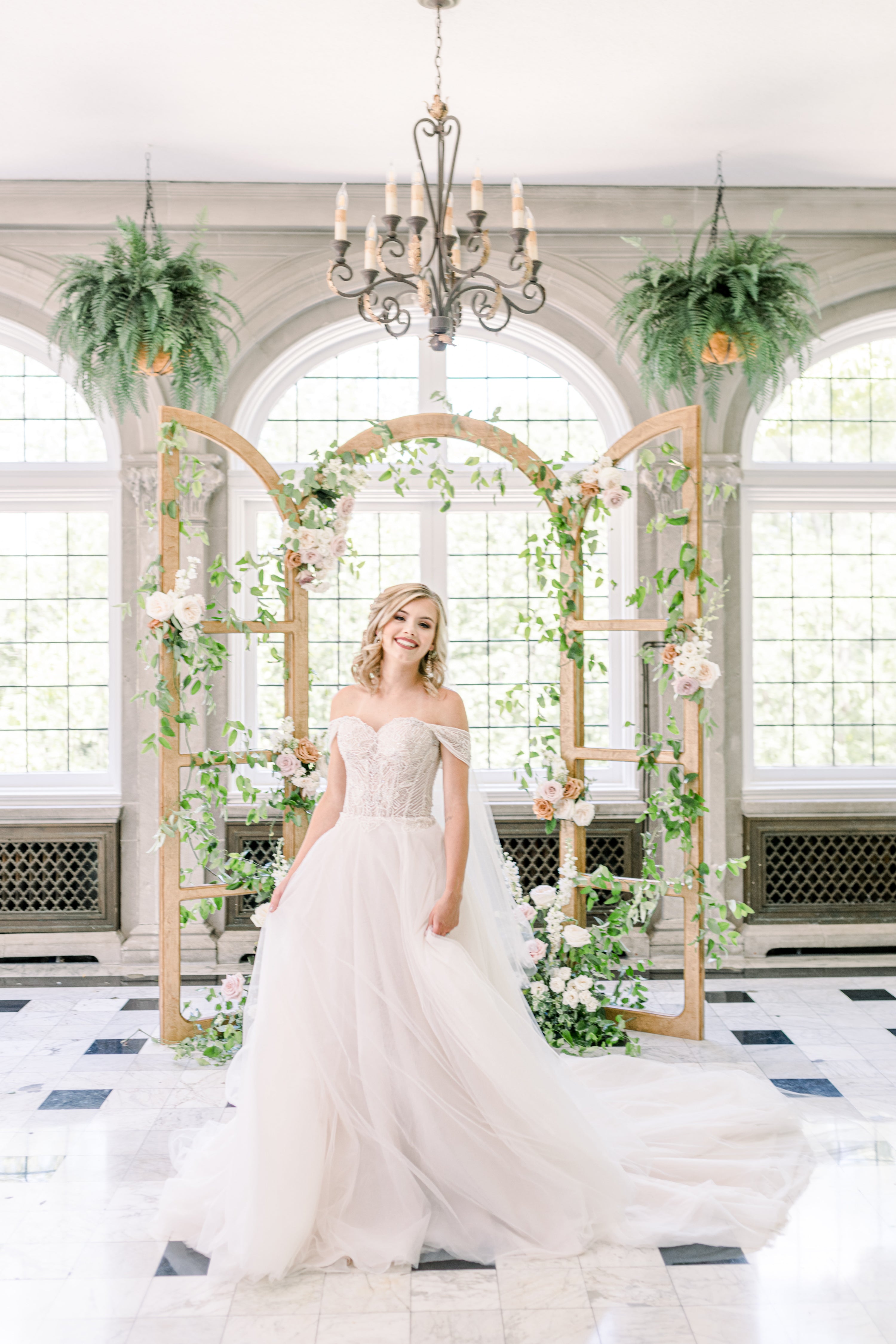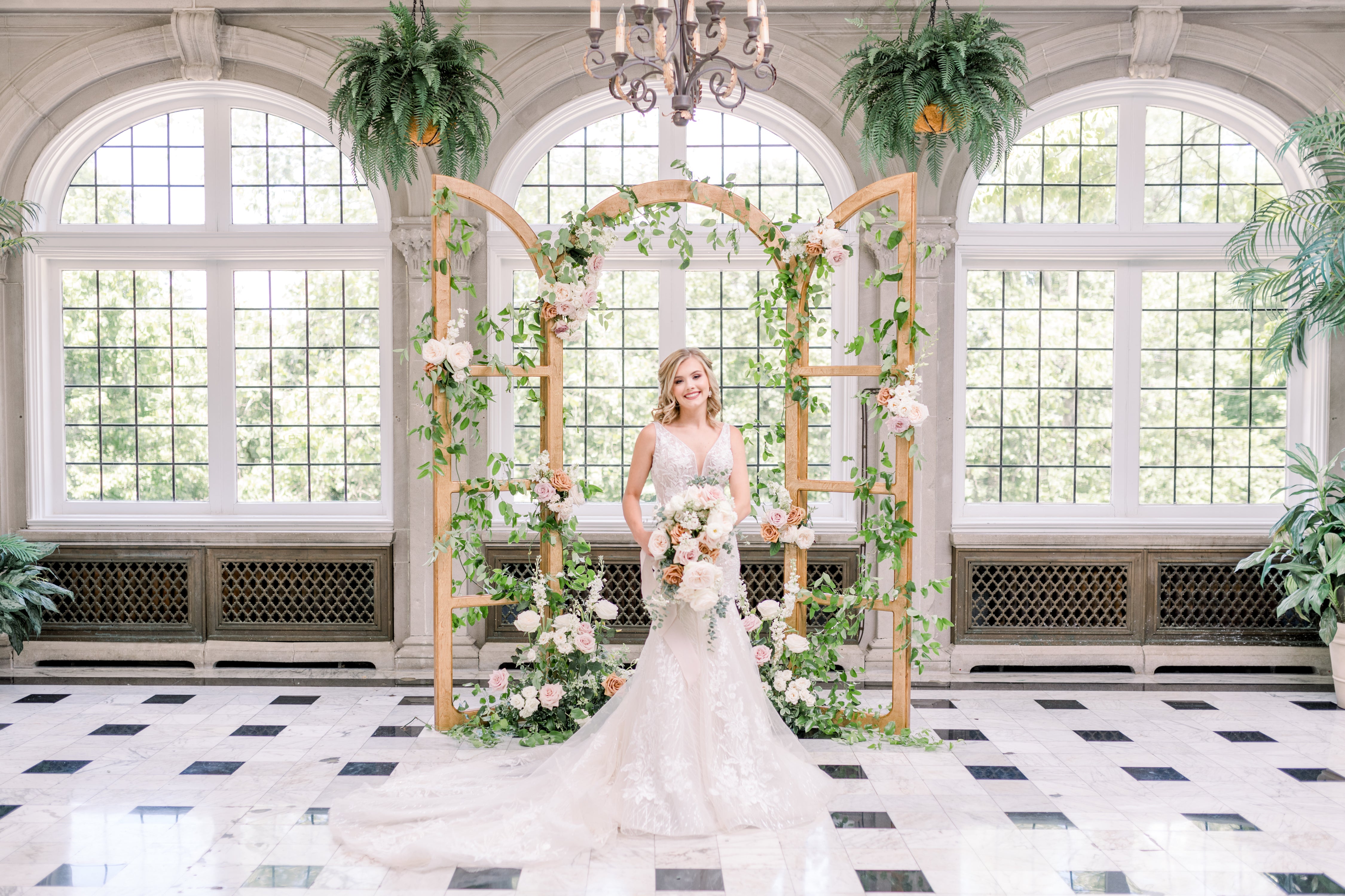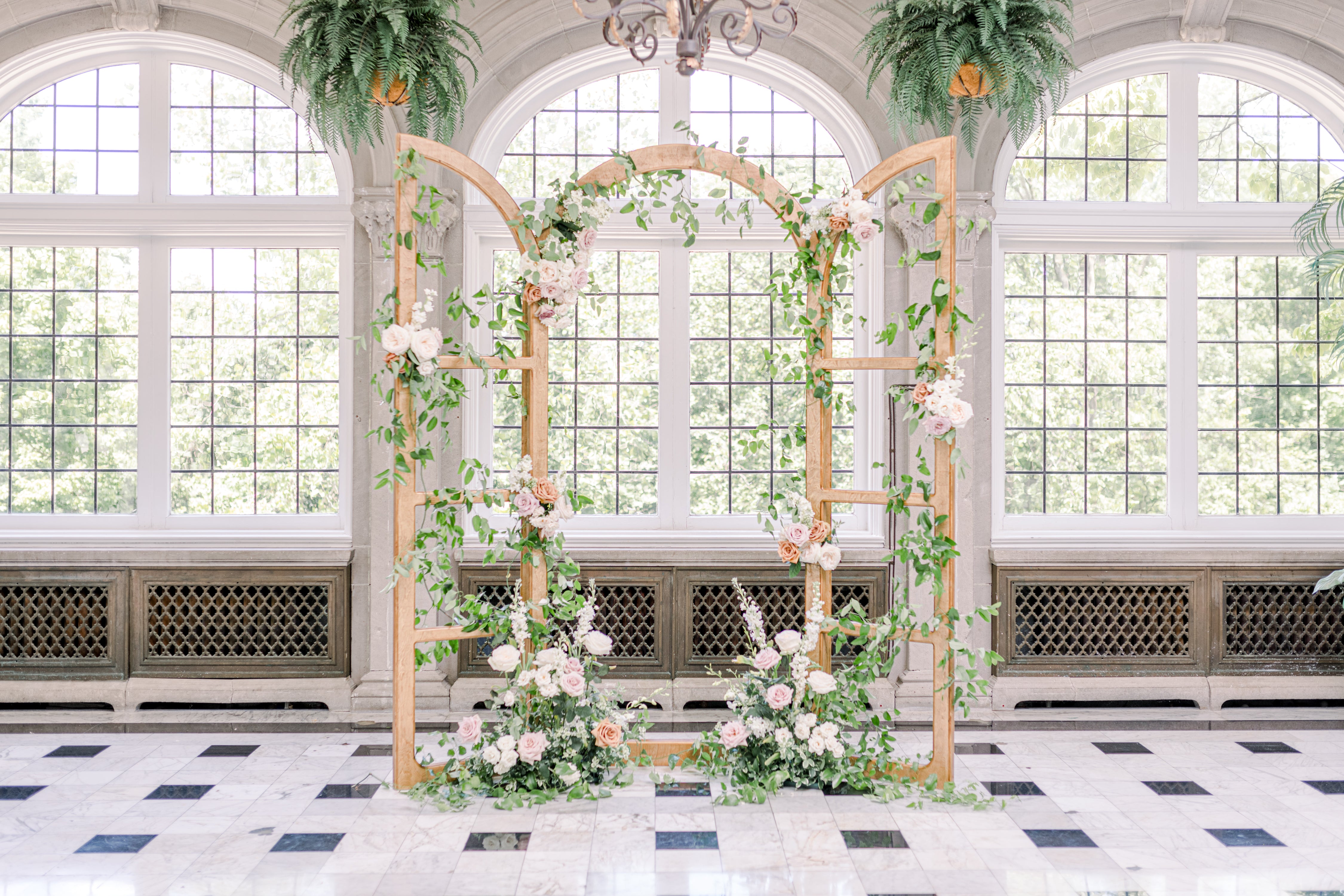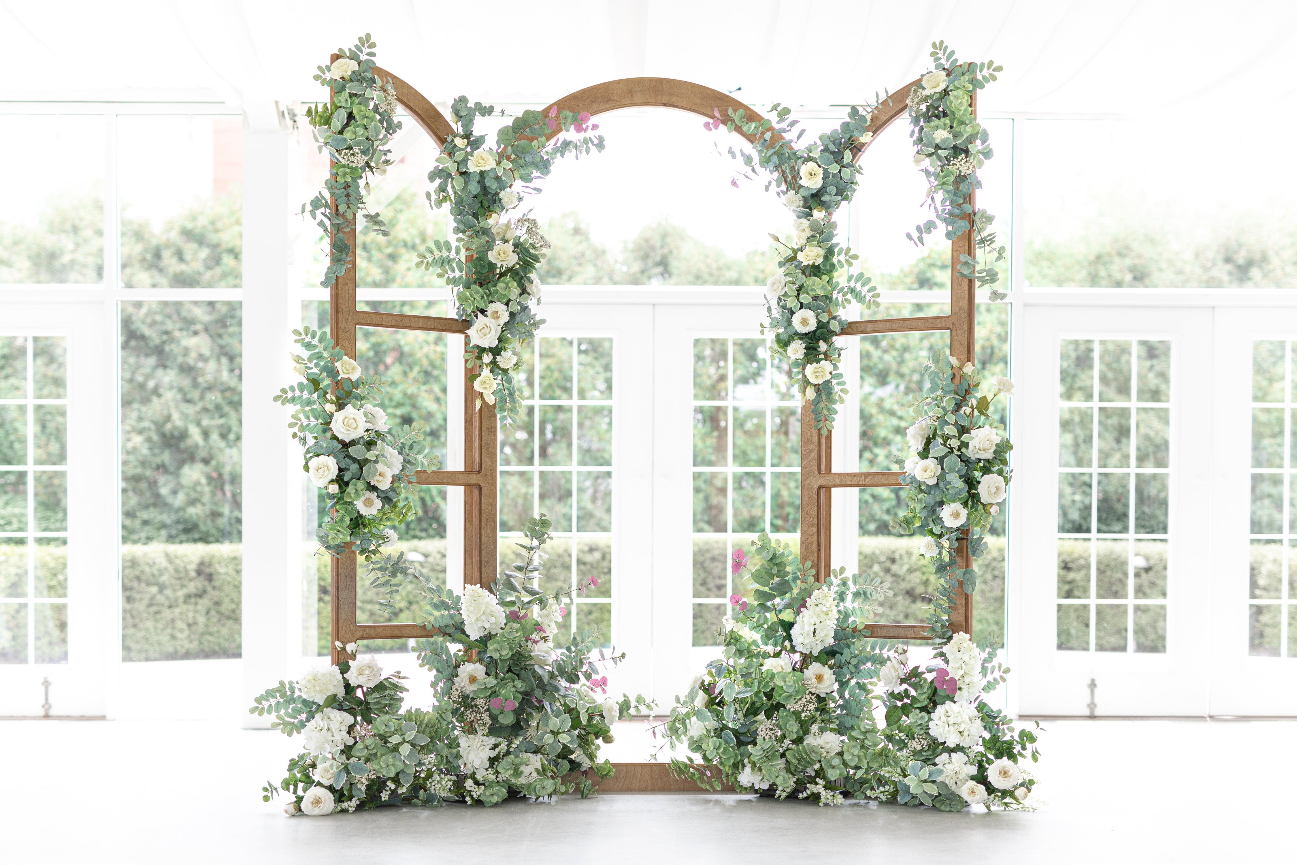 The incredible Sophia Arch is made of beautiful hand crafted wood in the style of a classic old world window frame. Our most beloved creation yet, you won't be disappointed with the elegant look this arch offers in any wedding.