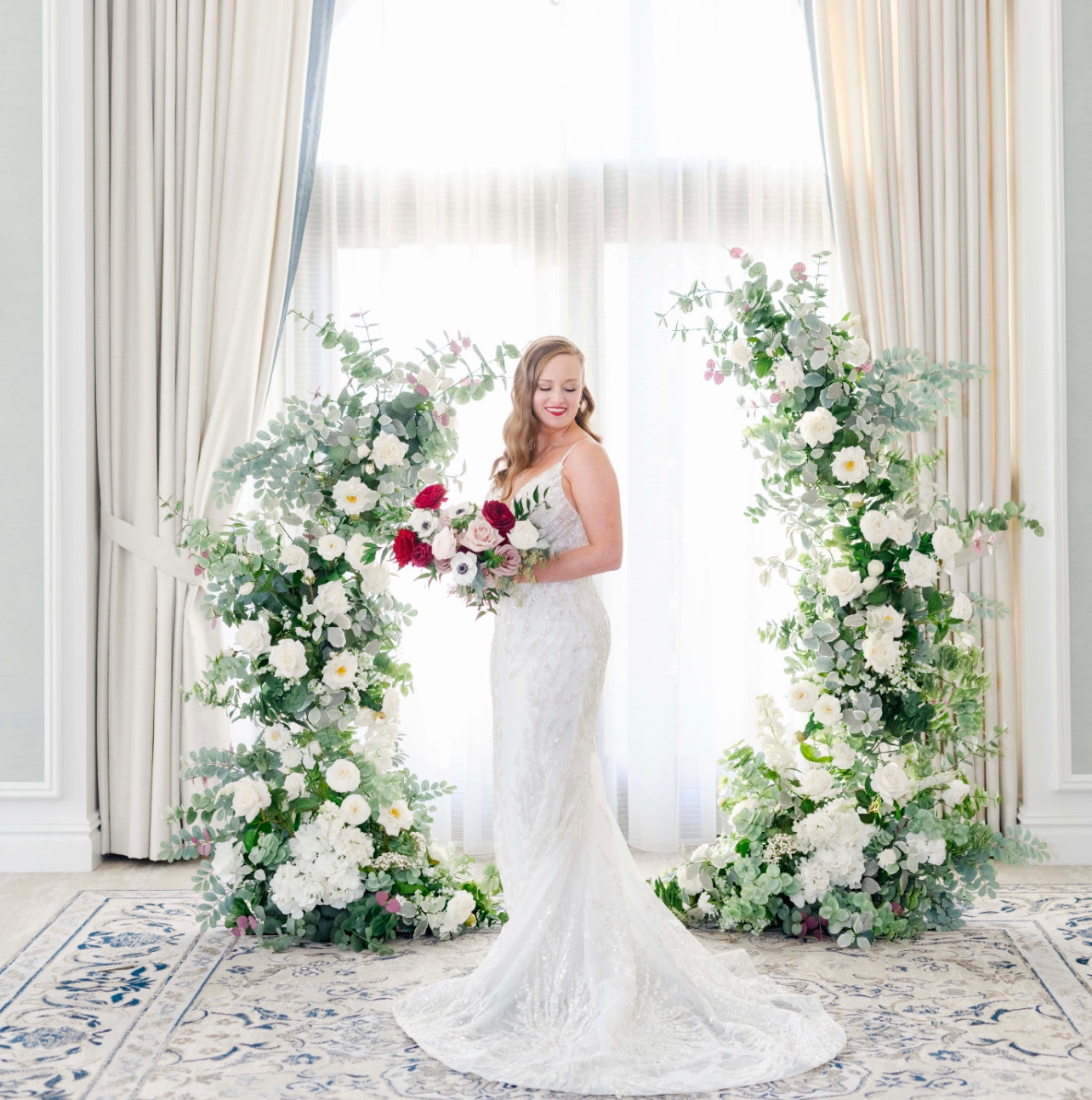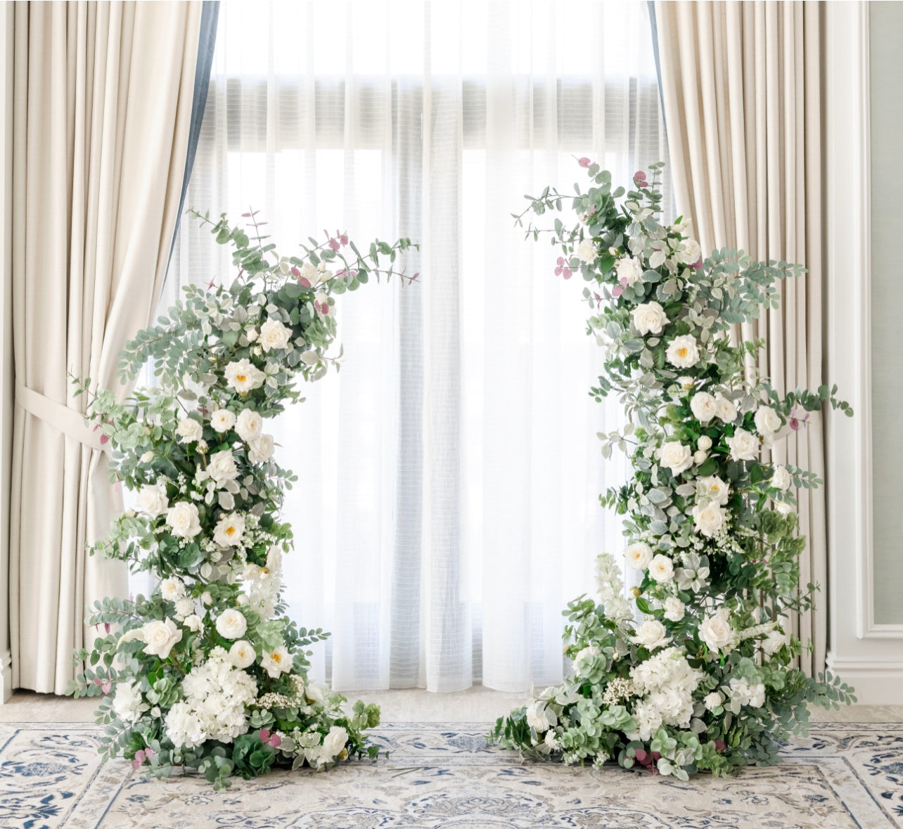 These arches can be placed at the altar to perfectly frame the bride and groom for the ceremony, at the beginning at the aisle for a statement entrance, or behind the bride and groom to frame their sweetheart table.